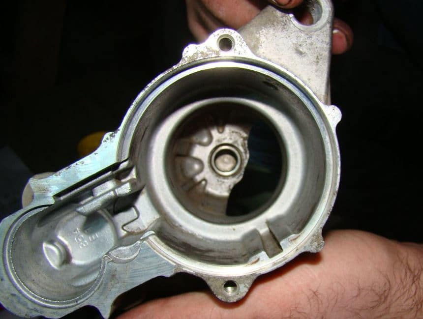 - После надо снять последний крепеж и разобрать стартер пополам. В случае, когда внутри его обнаруживаем шарик, необходимо сохранить его;