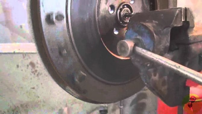 Для начала важно определить точку смещения веса. Для этого через центр маховика продевается металлический прут, который может выдержать подобный вес без деформации