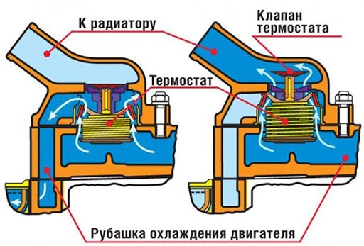 При закрытом термостате двигатель перегревается, поскольку потоки охлаждающей жидкости направляются по меньшему кругу. В таком случае тепло остается внутри силового агрегата. В другом случае двигателю может не хватать тепла.