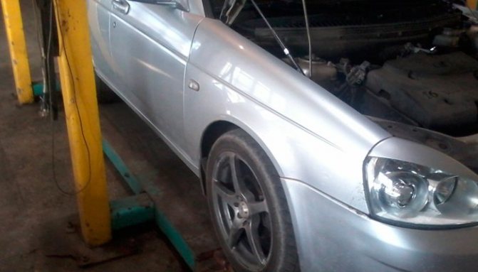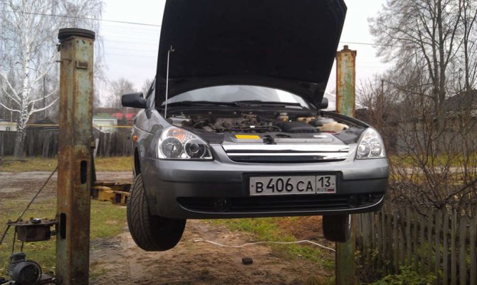 Замена масла в КПП Приоры своими руками потребует от автомобилиста предварительной подготовки. В первую очередь, купив всё необходимое, следует поставить машину в гараже, оснащённом ямой, на подъёмнике или эстакаде. После того как доступ к днищу транспортного средства будет получен, посредством отвёртки или гаечного ключа стоит демонтировать крепление брызговика силового агрегата.