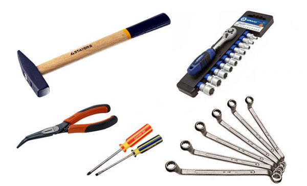 - комплект рожковых ключей и головок с трещоткой и воротком;