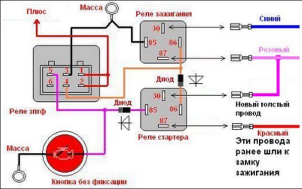 Другой способ тюнинга уже полностью исключает наличие ключа. Однако схема проведения модернизации более сложная, нужно обзавестись специальным реле (подойдет модель реле, управляющая на автомобилях ВАЗ задними «противотуманками»).