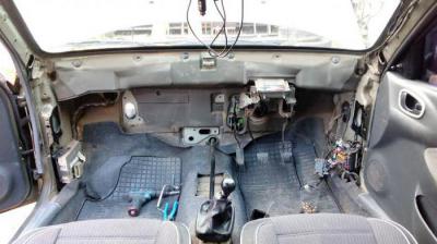 - Перебираемся в салон. Демонтируем и извлекаем передние сиденья.