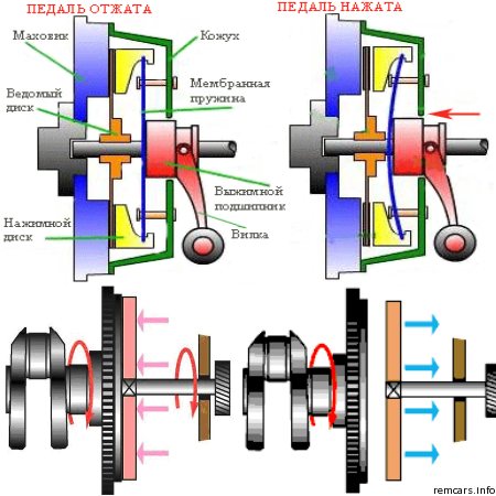 Двигатель автомобиля передает свою энергию грузному маховику. При управлении акселератором можно уменьшить или увеличить число оборотов. А для того, чтобы машина двинулась с места,подобное движение должно быть передано на «механический» редуктор – в нашем случае на коробку передач автомобиля. Чтобы машина не заглохла, вращение должно передаваться с максимальной плавностью. Аналогичные требования предъявляются и к остановке транспортного средства. Сцепление – именно тот вспомогательный элемент, без которого это было бы невозможно реализовать.