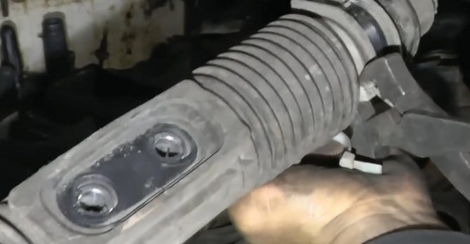 После этого переключайтесь на подкапотное пространство, где нужно раскрутить метизы крепления пыльника реек. Эта деталь прикреплена одной гайкой сверху и двумя гайками снизу. Затем потребуется осторожно высвободить и вытащить пыльник.