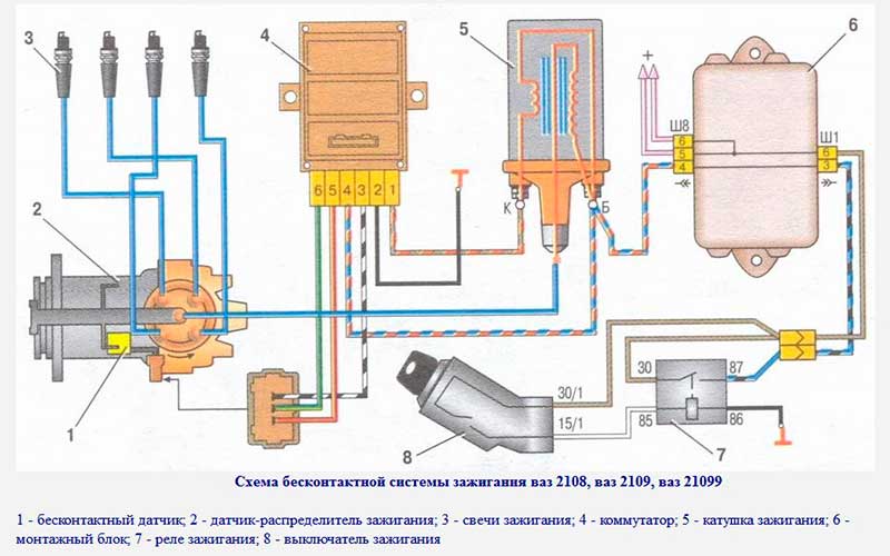 Система зажигания, не только ВАЗ 2109, но и других авто — цепь взаимосвязанных устройств и узлов, которые обеспечивают появление искры на свечах зажигания и последующее воспламенение топливовоздушной смеси в ДВС.