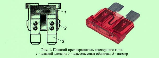 Составными элементами автомобильных предохранителей являются такие элементы, как корпус и плавкая вставка. На автомобилях Шевроле и ДЭУ Ланос устанавливаются устройства флажкового или штекерного типа. Корпус таковых устройств изготавливается из пластика. Плавкая вставка находится внутри корпуса, который обязательно не должен быть герметичным. Из корпуса выступают два контакта (ножки), посредством которых деталь устанавливается в электрическую цепь определенного прибора.