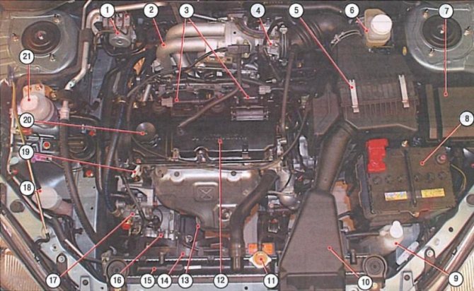 Предохранители под капотом автомобиля расположены в месте, обозначенном позицией 7.