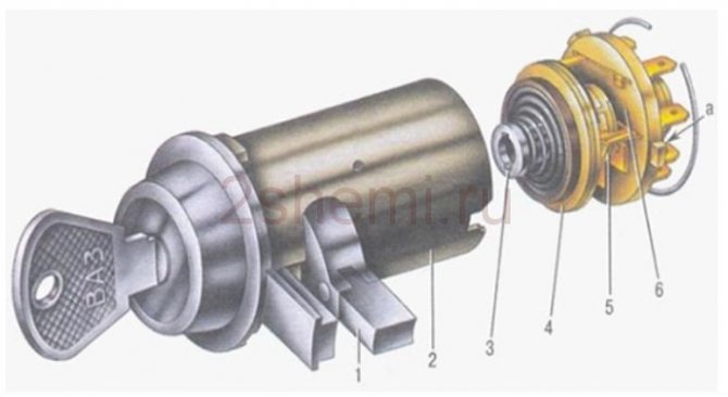 Конструкция замка зажигания предполагает наличие нескольких обязательных частей. Основными составляющими узлов являются элементы: