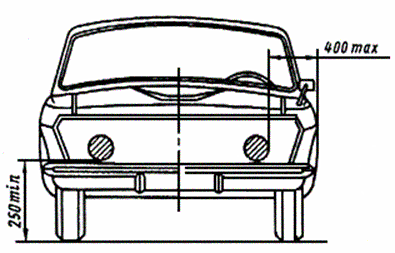 На задней стенке узла под названием «блок-фара» есть два регулировочных винта. Первый из них, расположенный ближе к радиатору, позволяет отклонять световой пучок «вверх-вниз», а направление «по горизонтали» регулируют вторым винтом. В идеале, должно получиться вот что: когда автомобиль находится в 5-ти метрах от экрана, граница светового пятна задевает линию «2» (см. рис.). Линия «1» отстоит от земли на расстоянии, равном высоте расположения центров фар. Вторую линию проводят на 65 мм ниже.