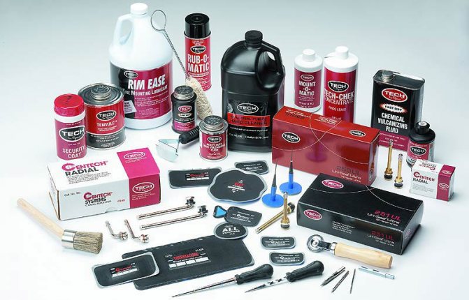 Специалисты рекомендуют владельцам легковых автомобилей постоянно иметь в багажнике набор для ремонта бескамерных шин, в который помимо инструмента входят специальный клей и жгуты.