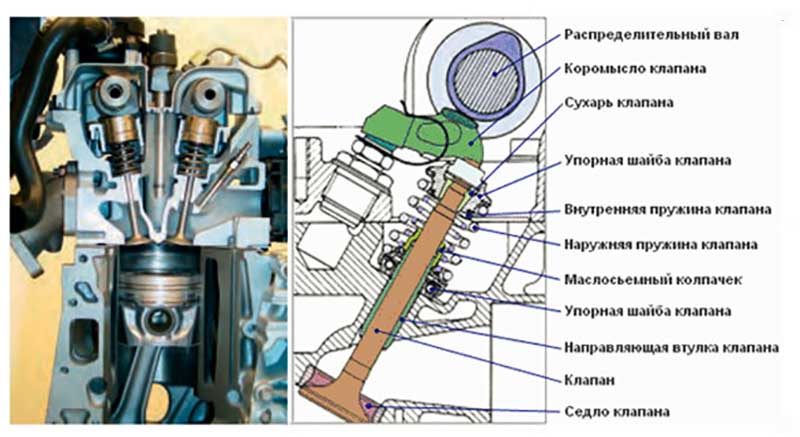 Примечание. На рабочий ресурс всех элементов газораспределительного механизма также влияет исправность системы питания и зажигания. Когда в результате неполадок возникают хлопки в топливный либо выхлопной коллектор, то смазка между парой клапан — втулка смывается несгоревшим бензином, отчего несколько секунд механизм работает «на сухую».