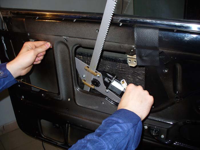После этого выкручиваете все болты креплений, которые имеются на стекольных каретках. Причем нужно их выкручивать как на механизме, так и на стекле. После этого из дверцы можно вытянуть весь механизм и приступать к монтажу электрического.