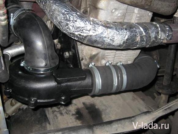 - ищем в отсеке для двигателя патрубки, соединяющие силовой агрегат с краном, с помощью отвёртки ослабляем крепления в виде хомутов, снимаем патрубки;