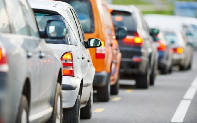 Пока автомобиль стоит в пробке, двигатель работает на холостом ходу и продолжает потреблять топливо