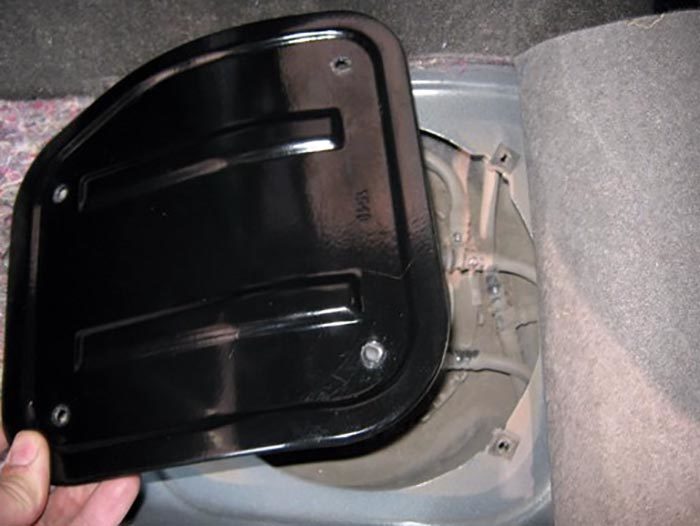 - Открутите крепления люка под задним сидением, откройте доступ к топливному узлу.