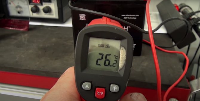 Ещё не весь электролит поступил в банки аккумулятора, а его температура уже поднялась почти на 2 градуса, до 26.2.