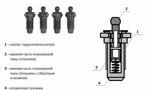 Гидрокомпенсатор устроен достаточно просто. Он имеет вид цилиндра, внутри которого устанавливается плунжер. Рассмотрим принцип его действия пошагово.