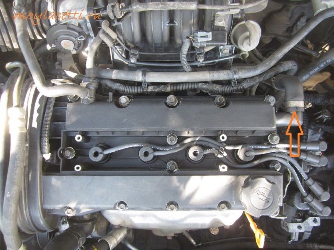 - Аккуратно ослабляем хомуты крепления шлангов сапуна и вентиляционного клапана. При желании можно заменить и его. Номер фирменного клапана в каталоге — GM-96 495288.