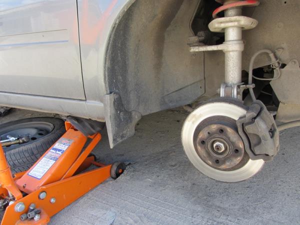 - При помощи домкрата приподнимите ремонтируемую сторону машины.